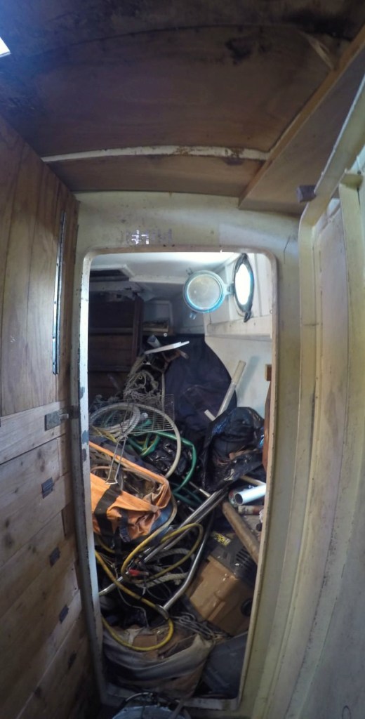 In the early years of Skua’s semi-abandonment she was variously used as a place for people to stay while in Luperon and a place to store hoarded boat things. In the last five years, the incoming rainwater and rats had taken a toll on the interior such that she was no longer really suitable for sleeping in, and most of the hoarded treasures were moldy or ruined. The result was that everyone’s first impression of the boat was of the dripping putrid interior and the heaps of trash rather than of the well-found hull still lurking beneath. As soon as we were settled in Luperon we dragged her over to the dock at Marina Tropical and began the enormous project of hauling out the mountains of trash and stripping out the rotten interior. We rented a container on land to save what wood and materials we could and, hauled loads of junk to the municipal dock and the dumpster.