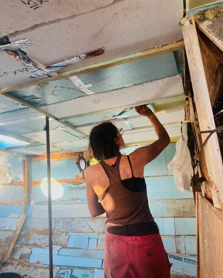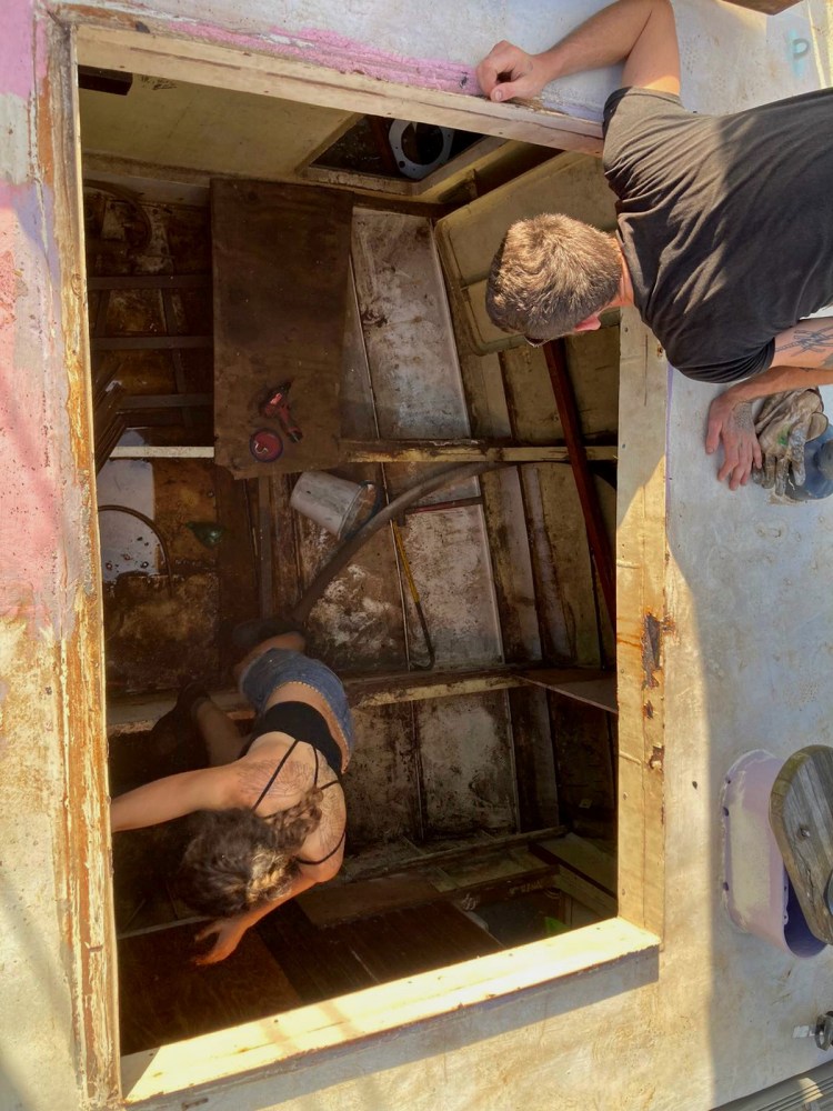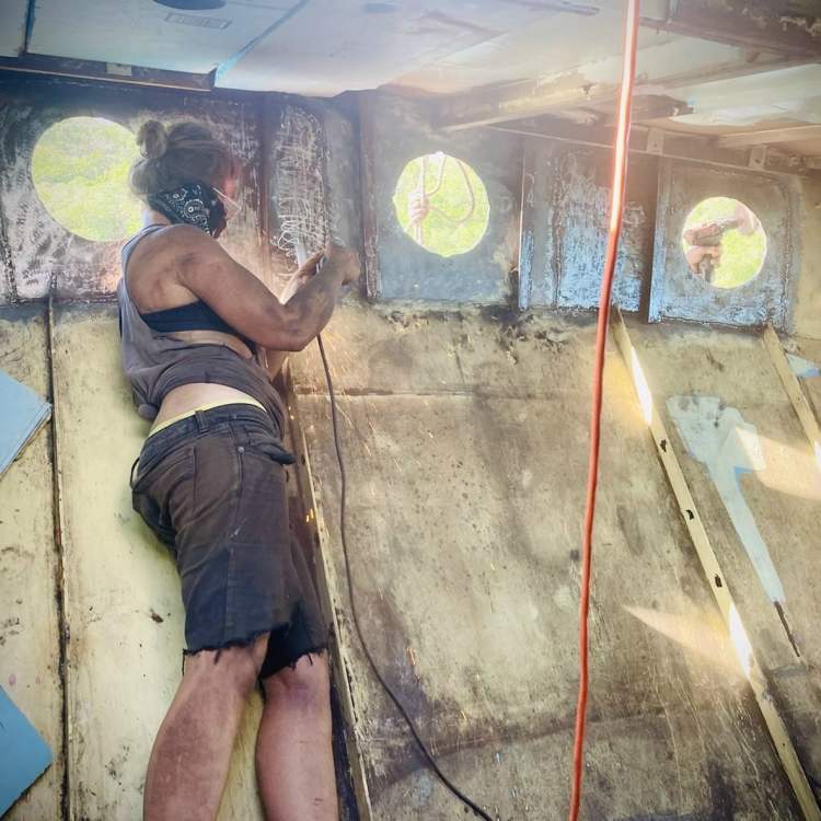 In late November 2021 the first wave of available friends came down to help work on projects. Throughout the month of December we worked on lots of welding grinding and painting projects, rebedding and installing portholes and insulating the replaced parts of the deck overhead. We learned about space and time management with different facets of the project going on at the same time in different parts of the boat. Mostly we got a lot done, and had a really good time.