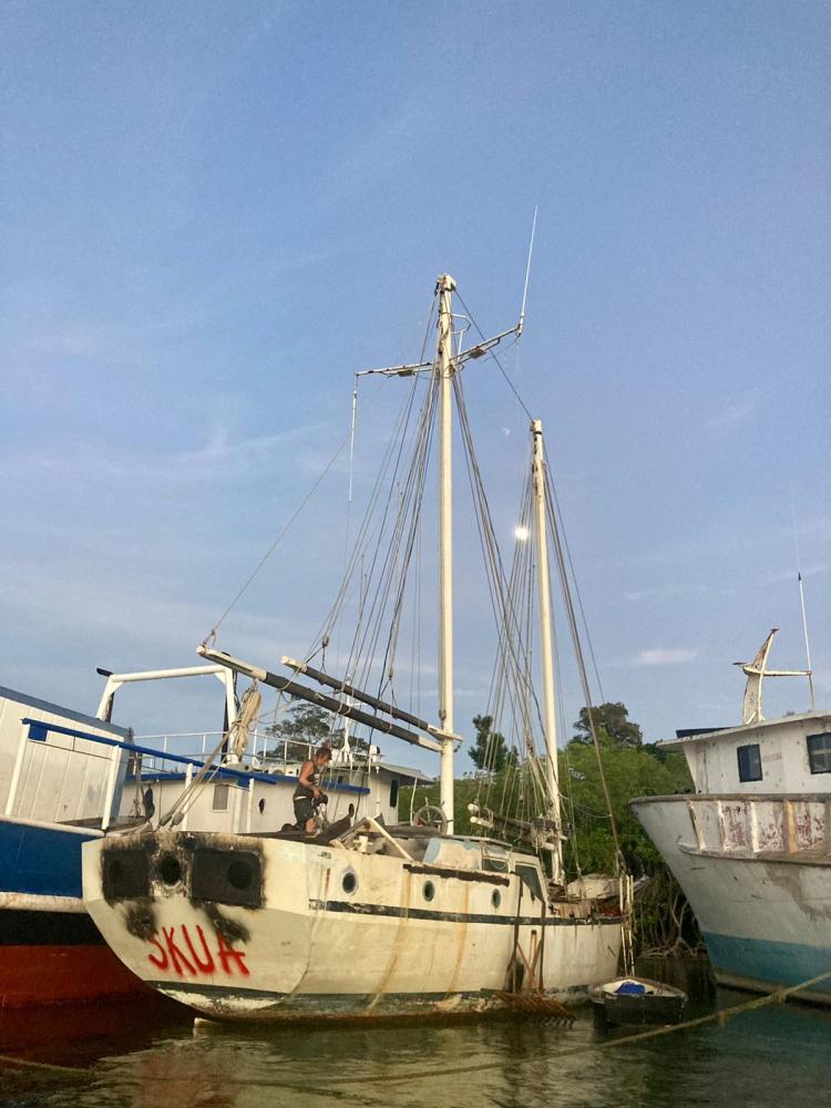 In September 2020 we spent 2 weeks in the Dominican Republic isolating on the schooner, assessing her condition and eventually accepting the offer to take over her salvage. The Big Schooner is now ours to start a new community project with. We named her Skua.