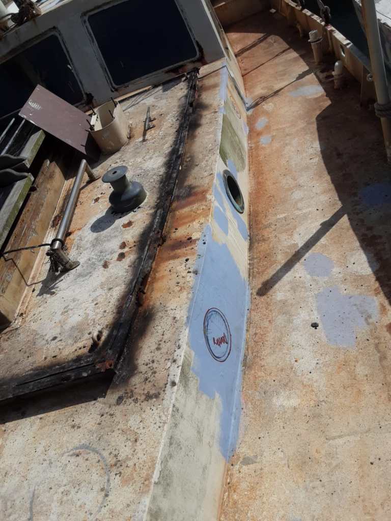 Once returning from another summer season working in Alaska our first priority on Skua this September was to move forward with the welding projects on deck that would make the boat stop leaking from above and structurally safe for its rigging. As we did not yet have our own power plant running we worked with the generous help of friends in the local fishing fleet until we got a generator working that could run the welder.